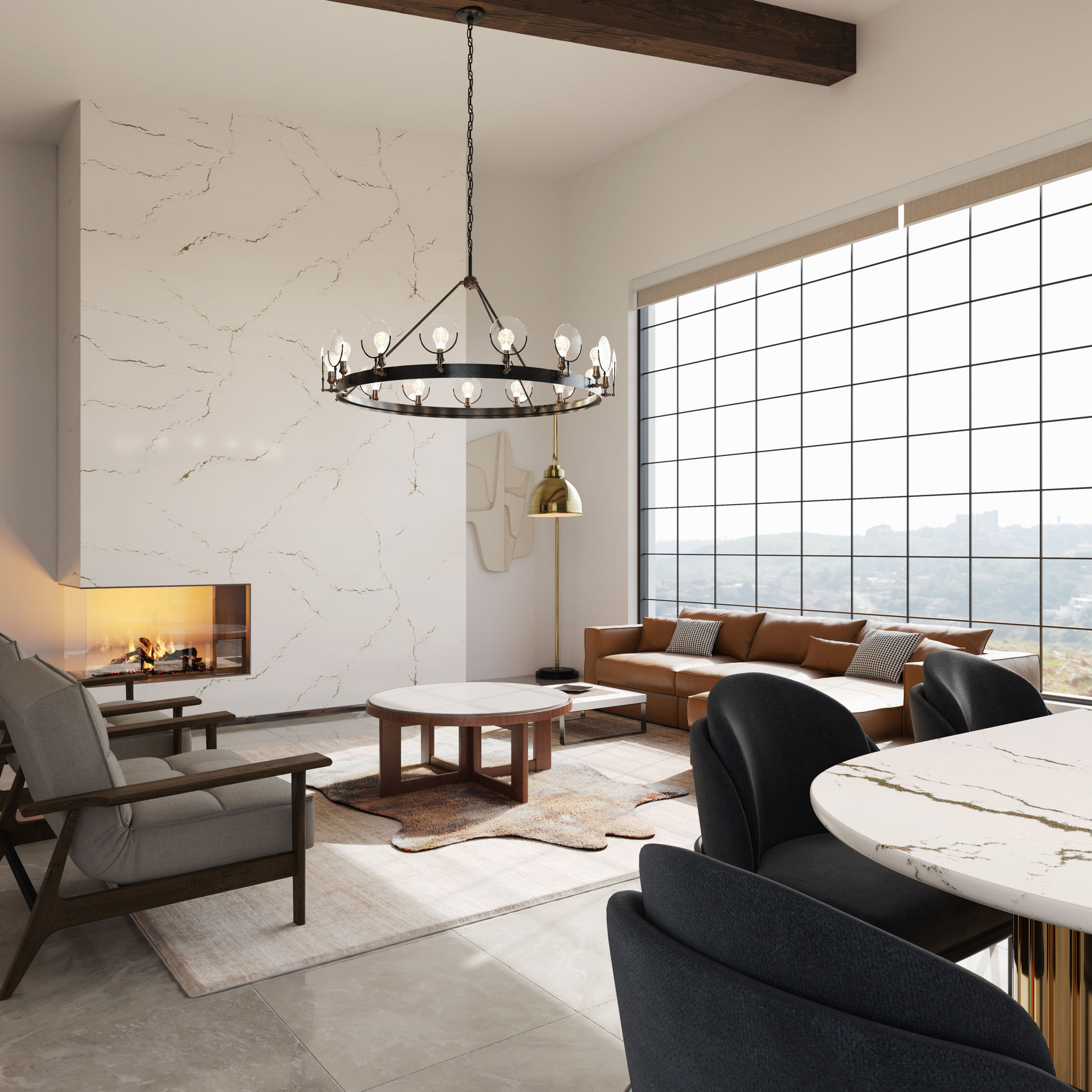 Featuring subtly raised Satin Ridge™ alloy veins, this tactile design features brass veins and delicate gray accents that jet across a cool, marbled white background.