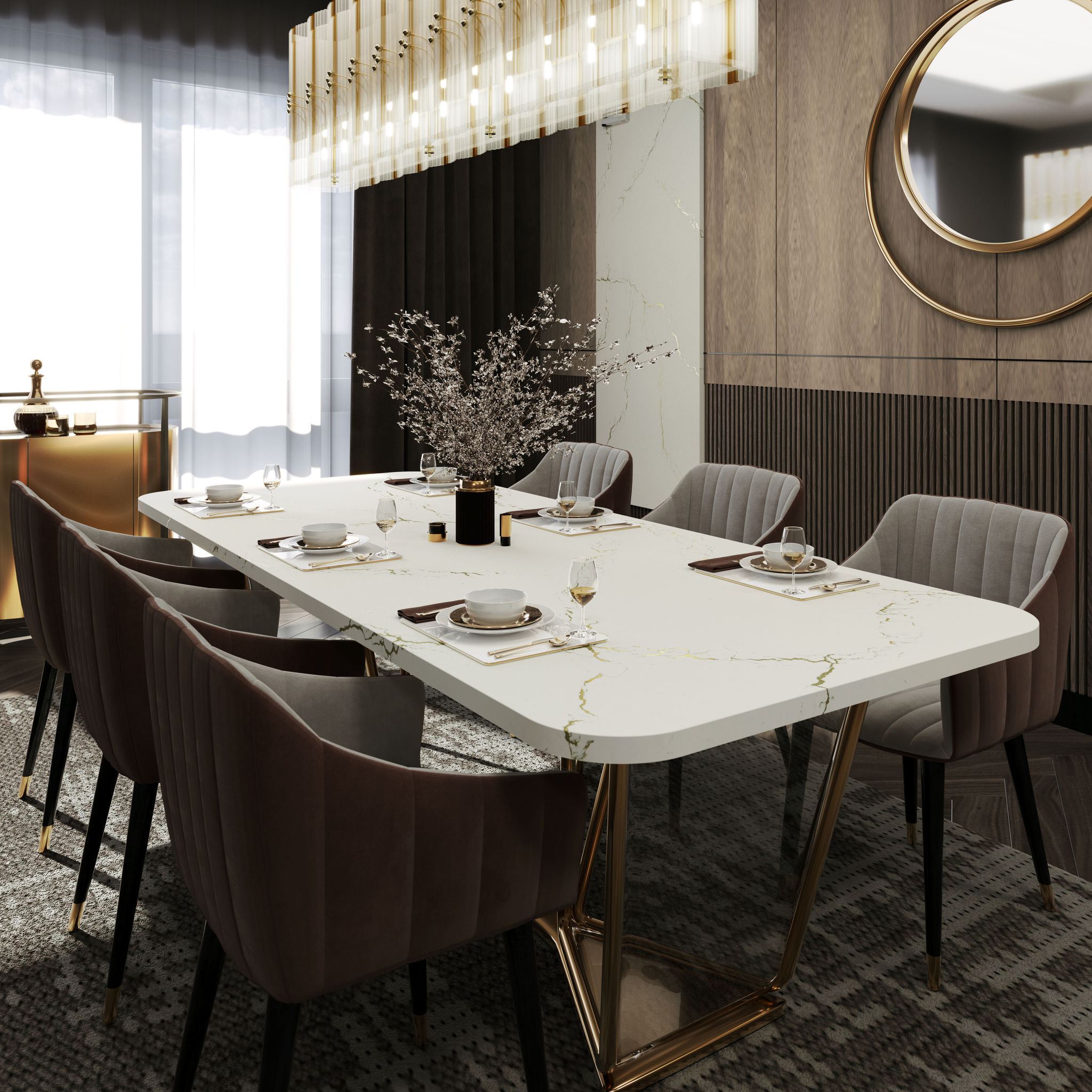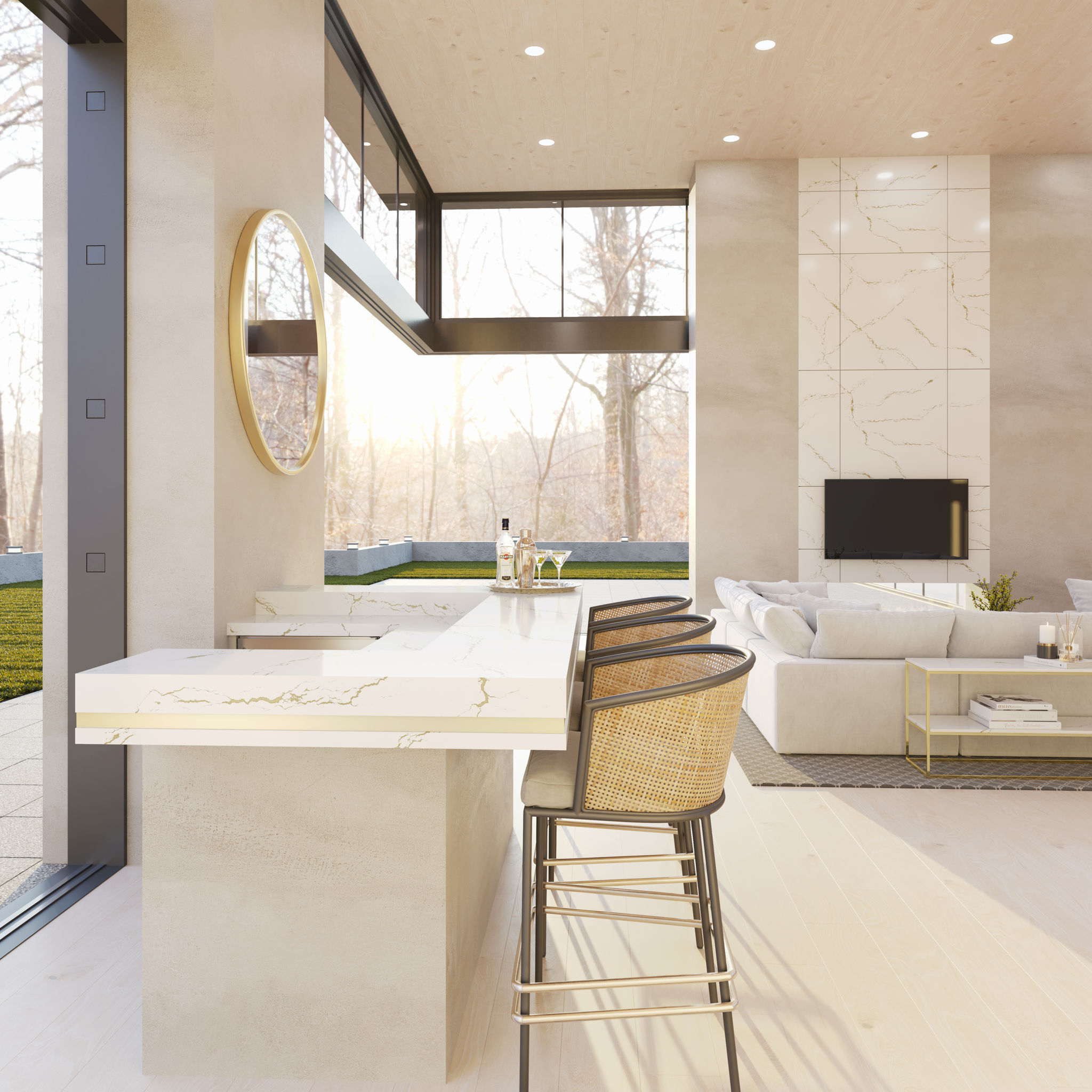 Softly textured brass veins—accompanied by delicate gray accents—jet across a cool, marbled white background, creating a tactile and modern appeal.