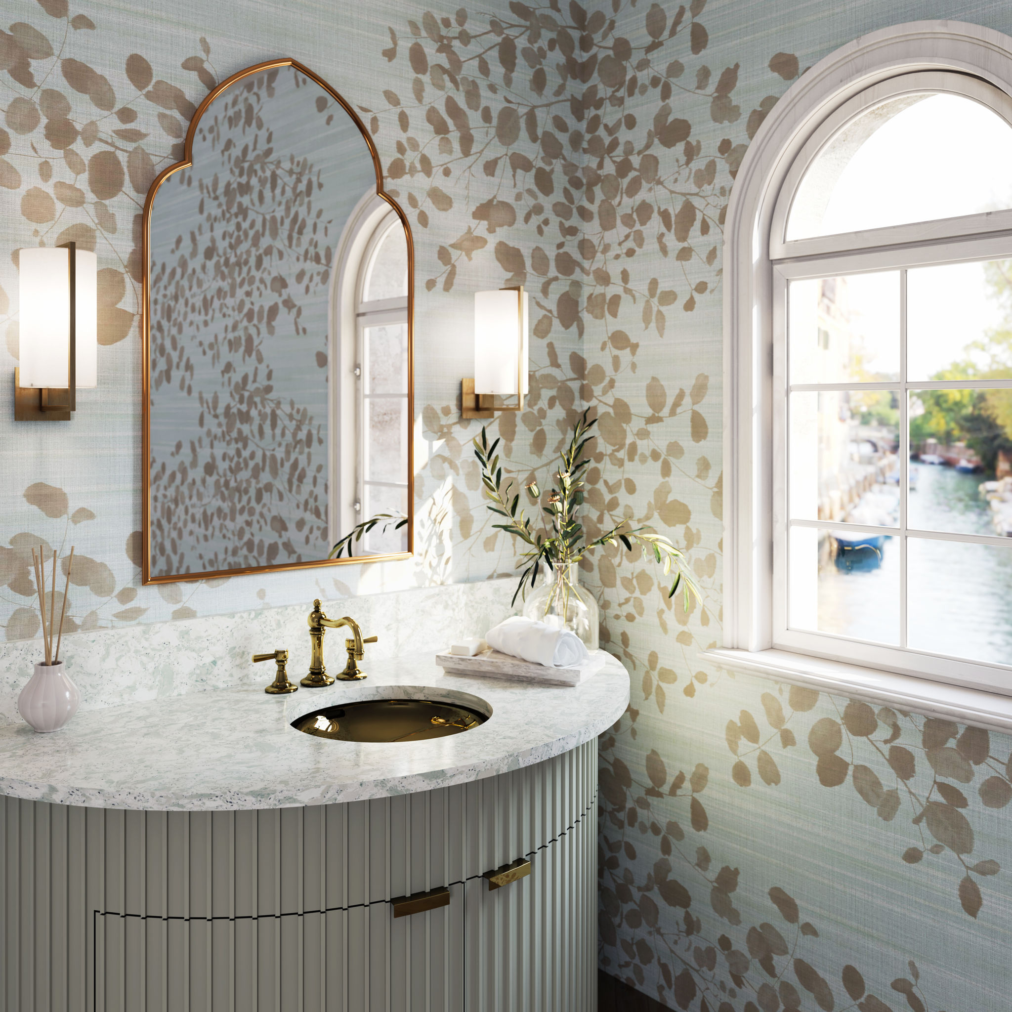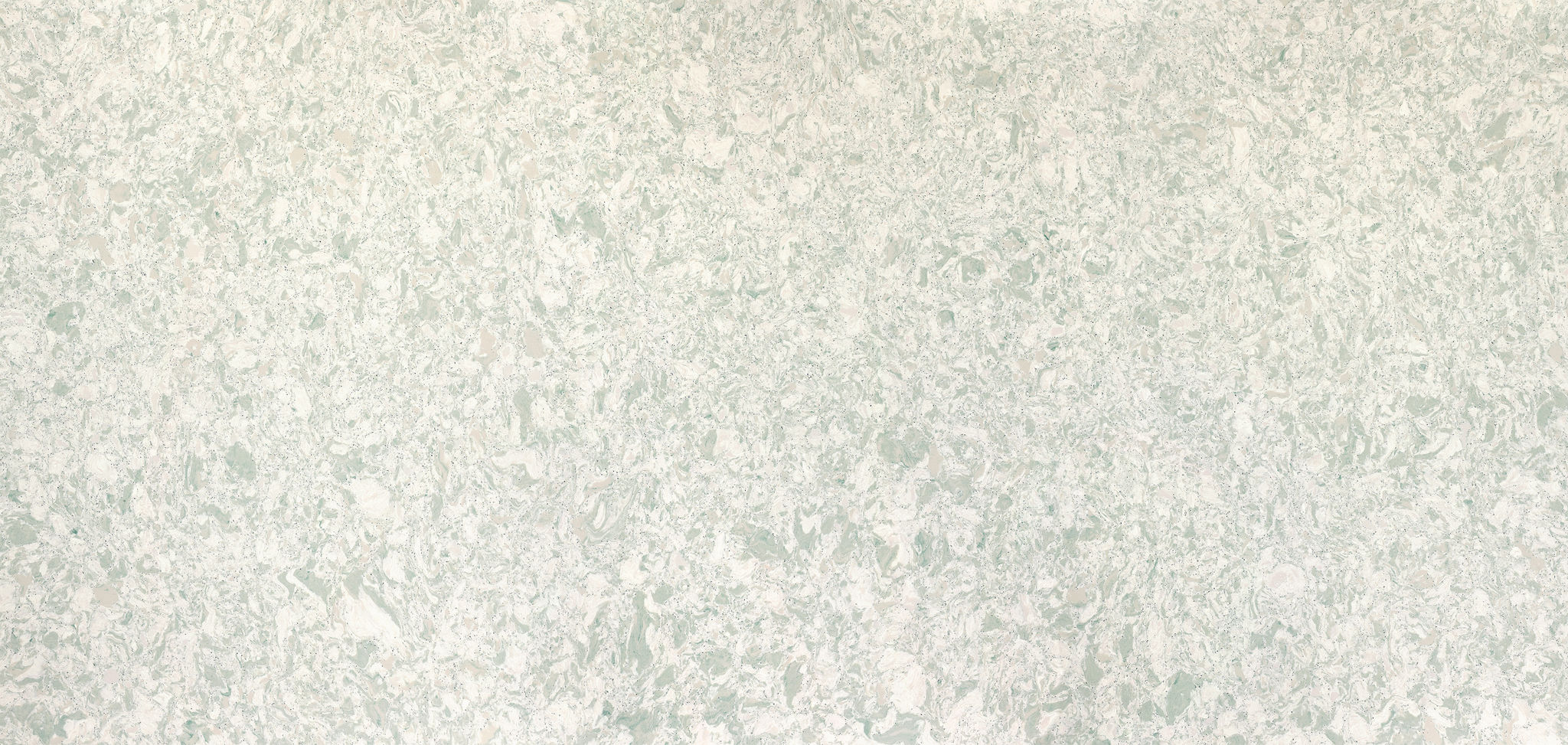 Cool whites and soft, sage greens evoke the beauty of an idyllic seaside escape, enhanced by silver flecks that glint enticingly.