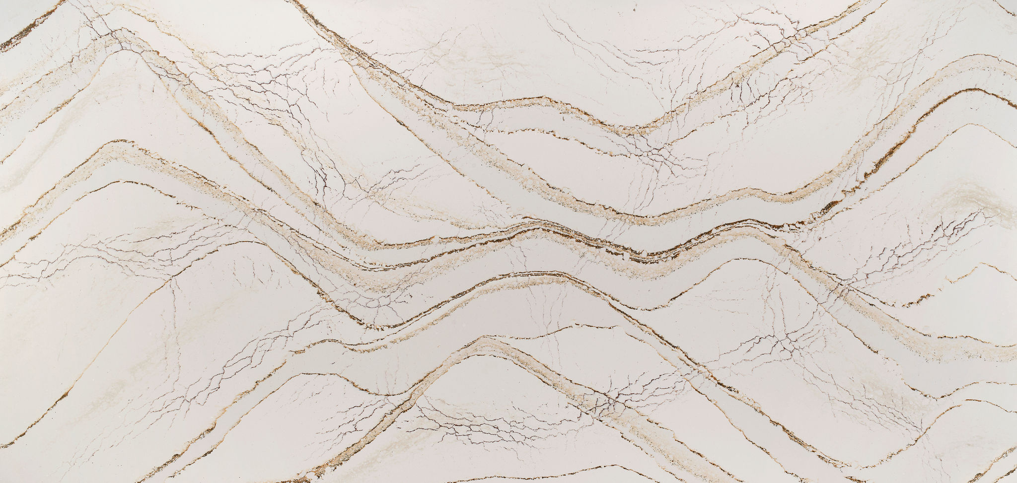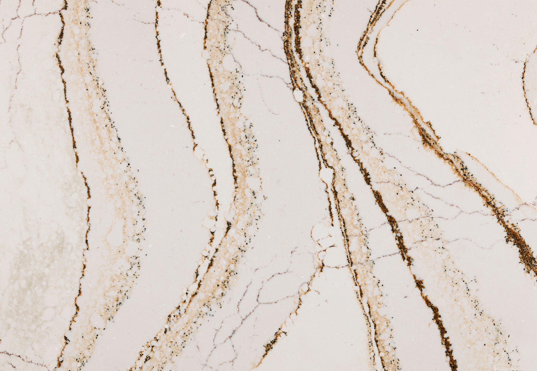 A creamy background sets the stage for this sophisticated design. Veins of copper and brown meander throughout accented by delicate dots of black.