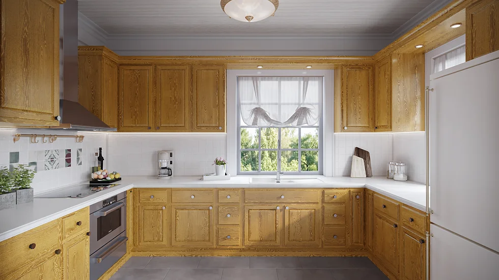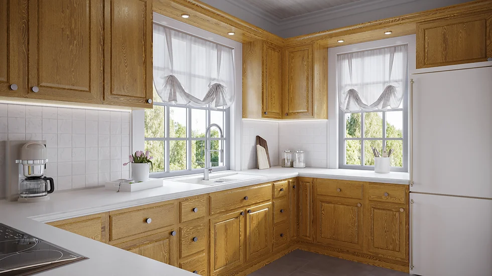 This solid oak cabinet combines traditional style with lasting quality. A practical, light wood finish coats the interior of the cabinets, while the exterior is tinted with a warm honey color. Country Oak’s durability ensures these cabinets will be a lasting, charming fixture in your home for years to come.