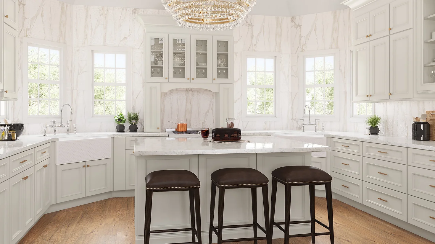 The Imperio Dove cabinets boast a full overlay door with mortise and tenon construction, offering a seamless and sophisticated look. Solid wood door frames, coupled with an MDF center panel and applied moldings, create a harmonious blend of durability and beauty. All Allure door styles feature Blum Compact Clip Concealed Hinges with Quick-Release Technology and Blumotion Soft-close, ensuring a quiet and effortless operation. Note that specialized cabinets such as Lazy Susan, Easy Reach, and Pie Cut configurations may differ in their soft-close mechanism.