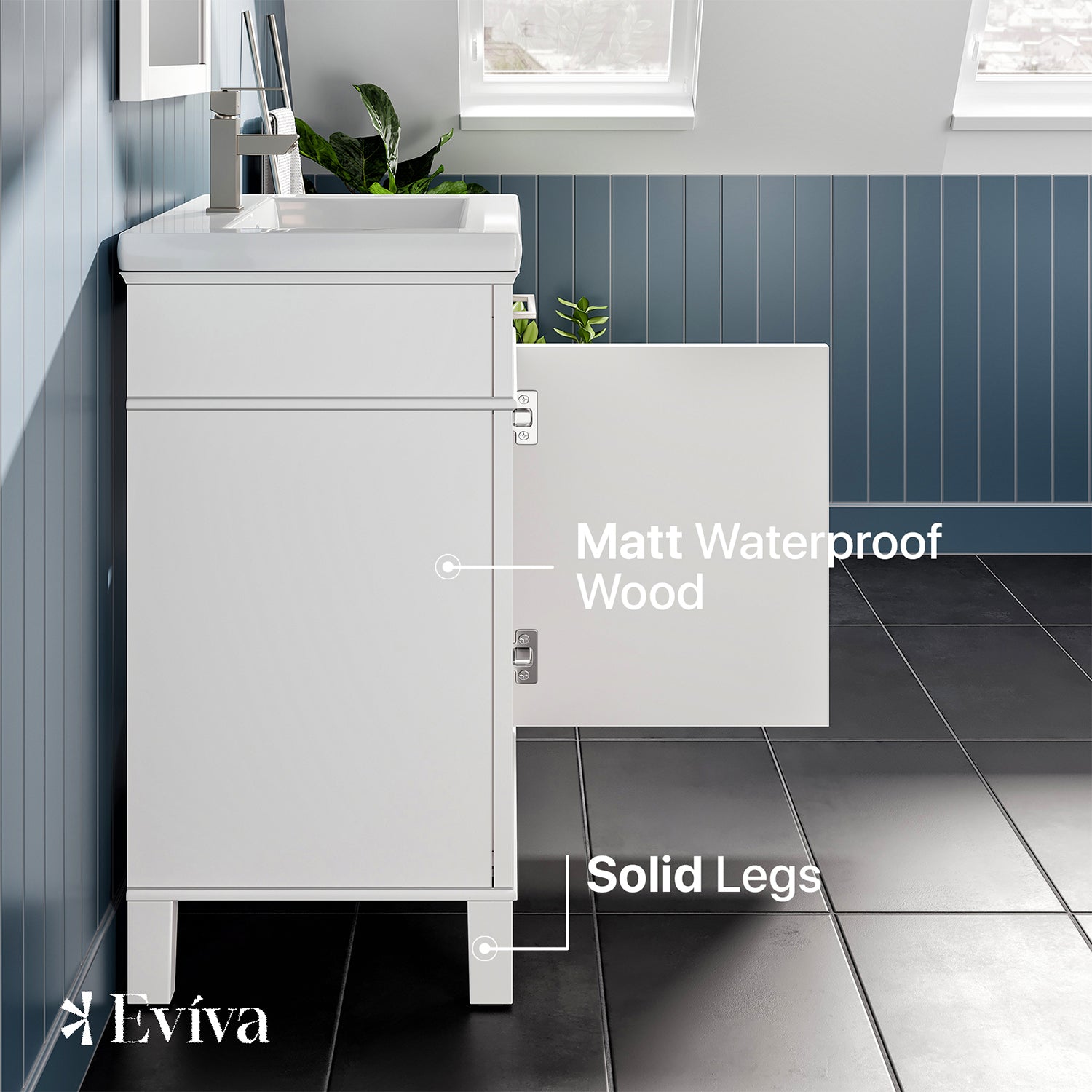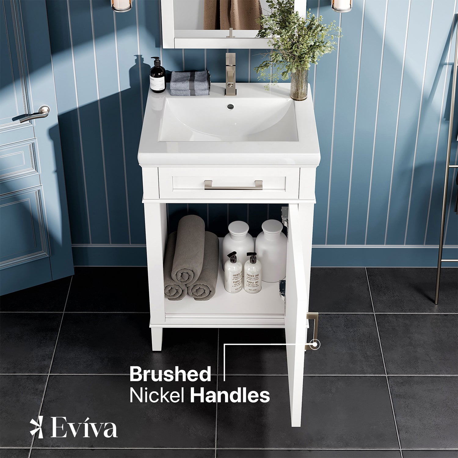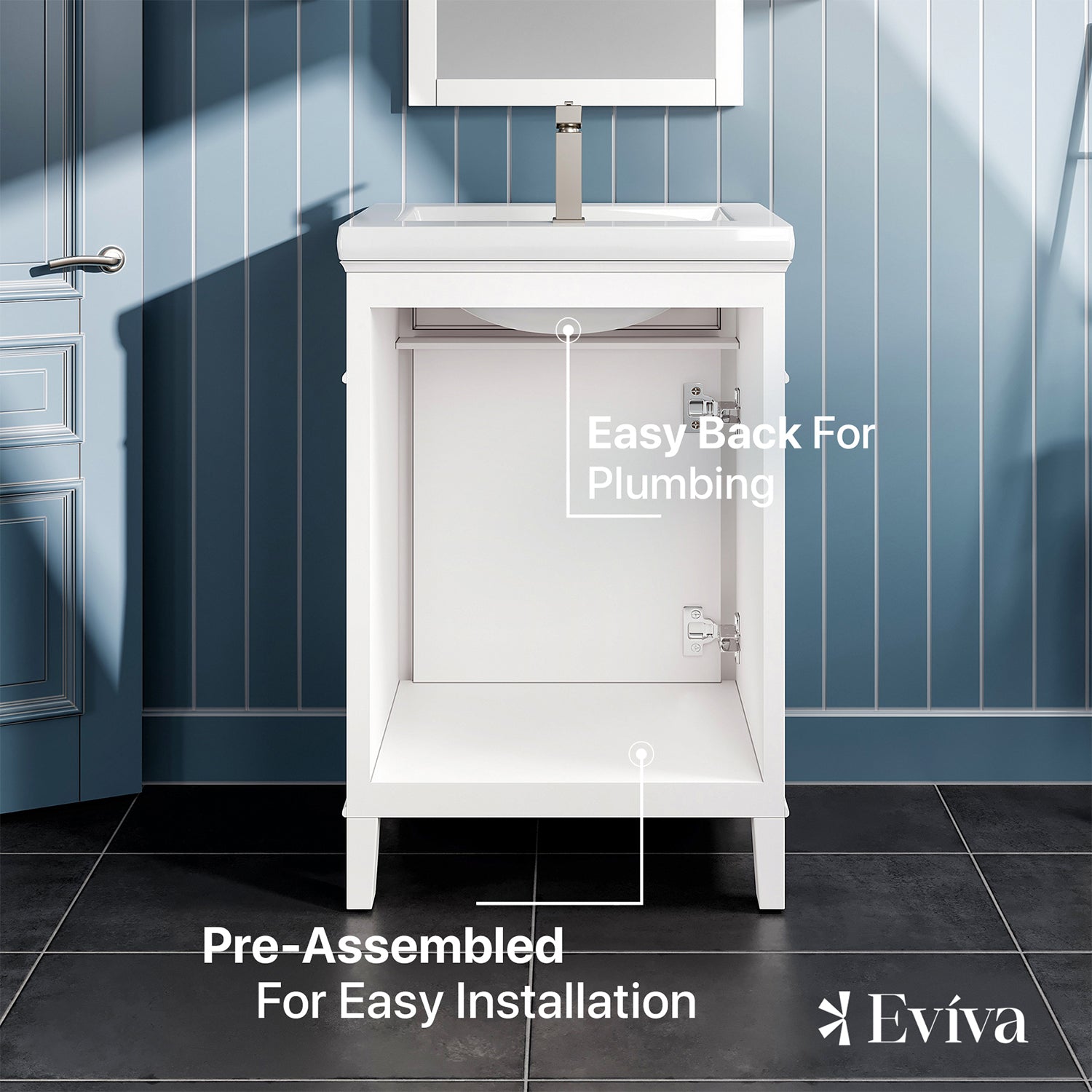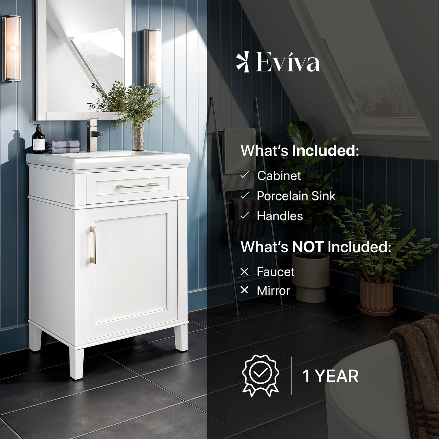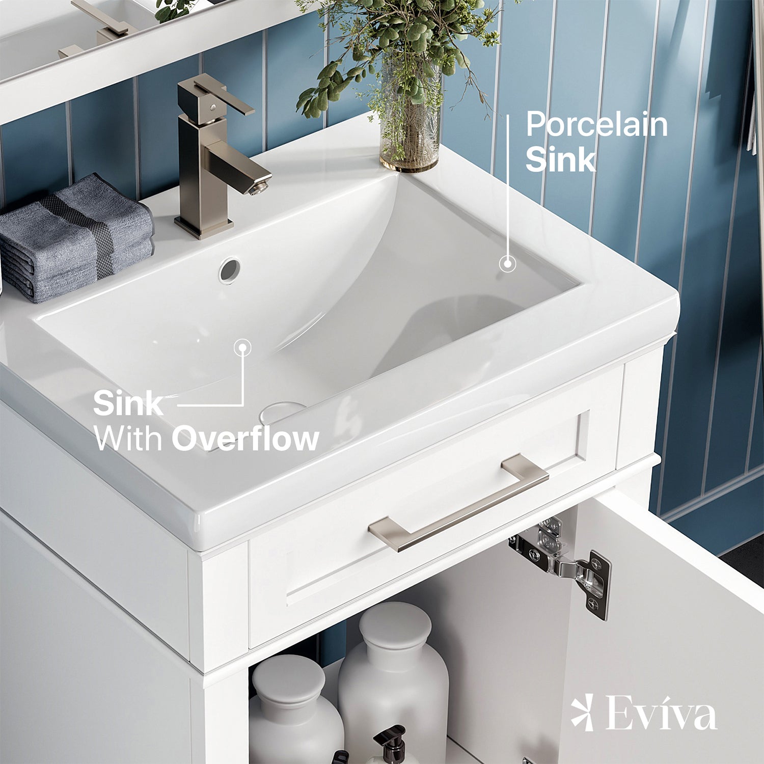 Garci Bathroom Vanity with White Porcelain Countertop and Integrated Sink.