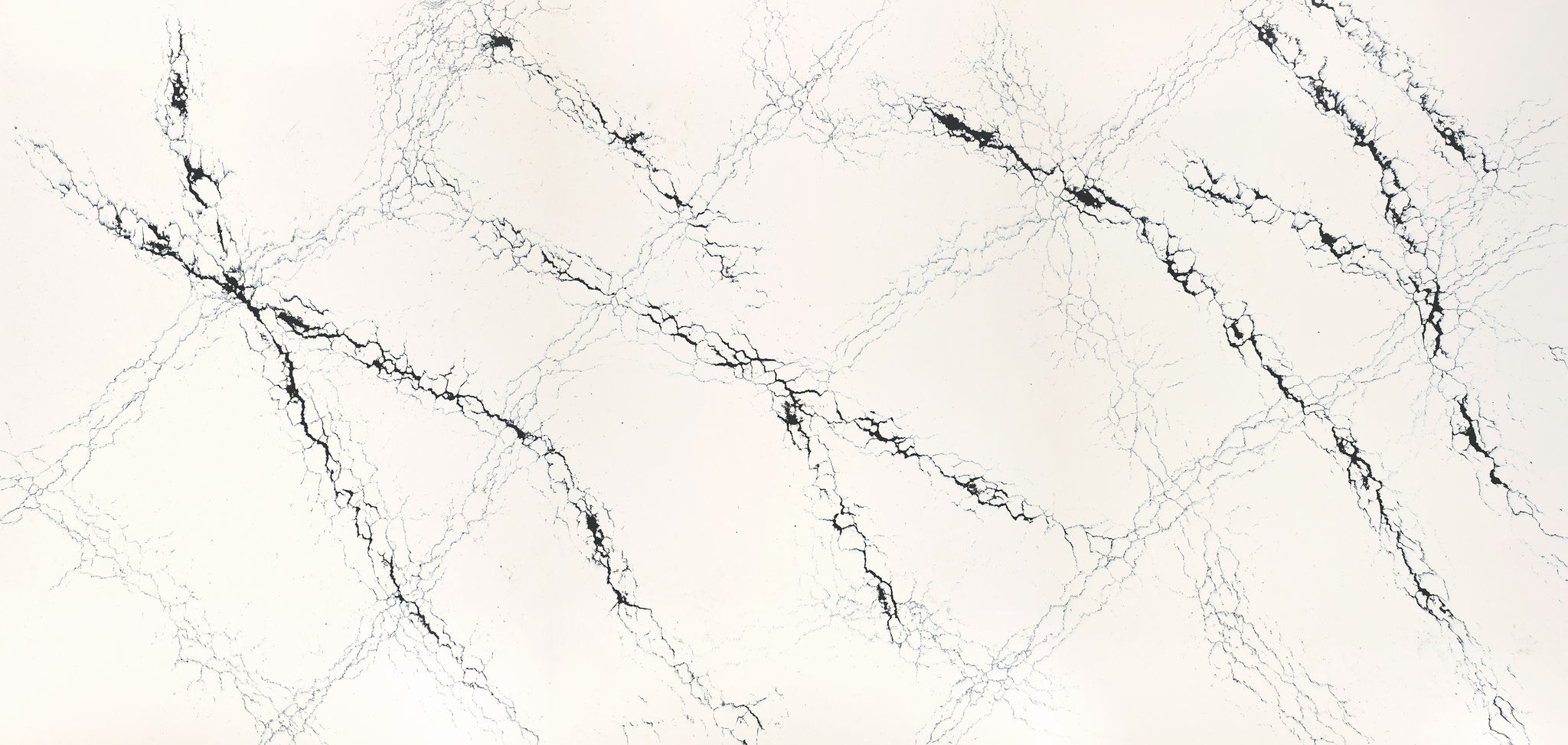 High-contrast, deeply saturated black veining cascades across a cool white background, intersecting with softer veins which pulsate and crackle.