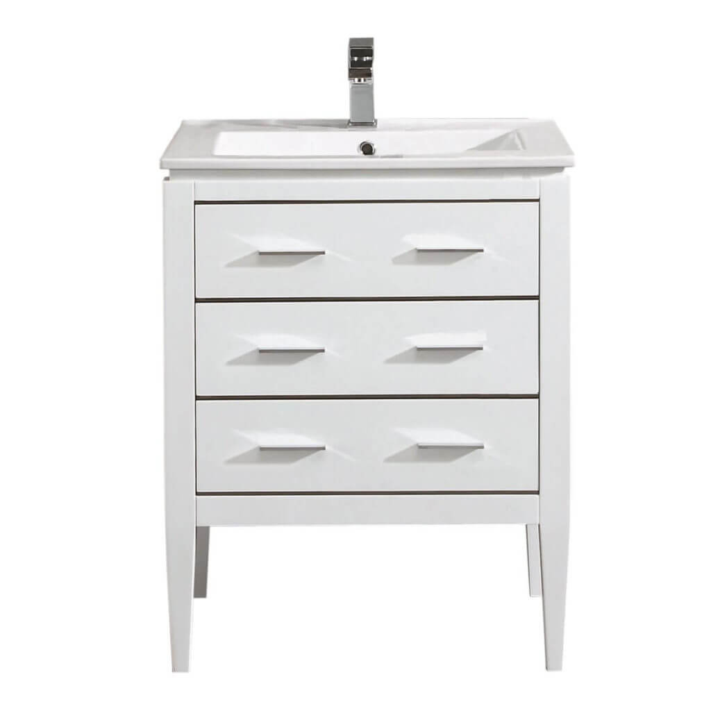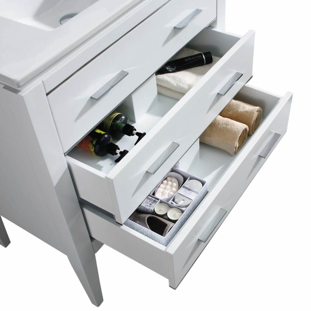 Truly functional, without the fuss, Ironwood is the durability of solid plywood with the simplicity of rail-thin accents. Featuring 2 full-sized drawers for maximum storage, elongated cone-shaped legs are integrated within the side paneling, while the top groove seamlessly surrounds the stone countertop with end-to-end finishing. Easy grip handlebars give the appearance of spindly metal rims with the cleverly applied flat attachments. Premium grade hinges allow easy open and close use of the drawer space.