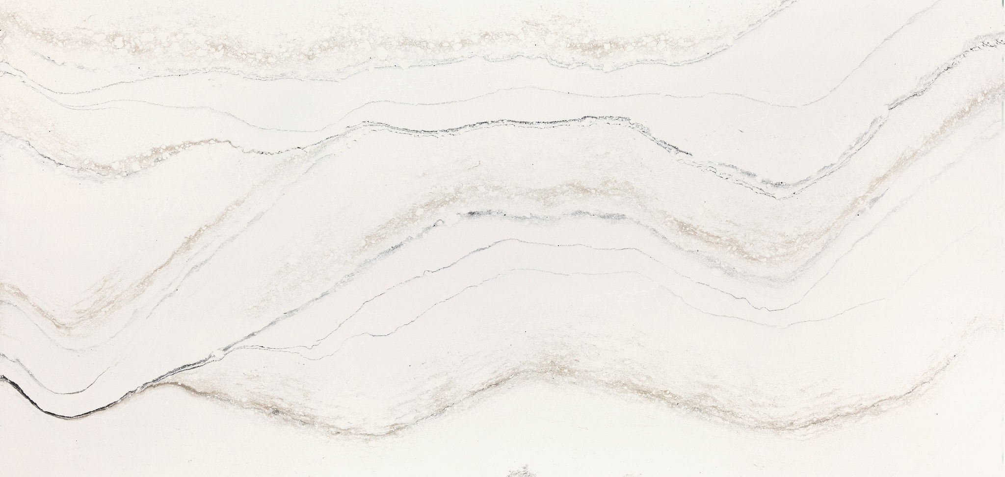 Soft colors—warm tan and cool gray—undulate as flowing streams with delicately stippled charcoal speckles against a bright white marbled background.