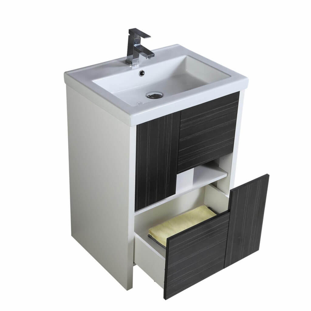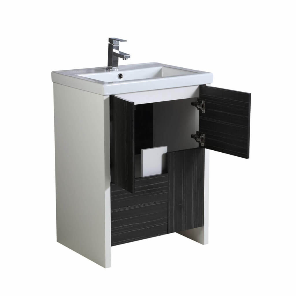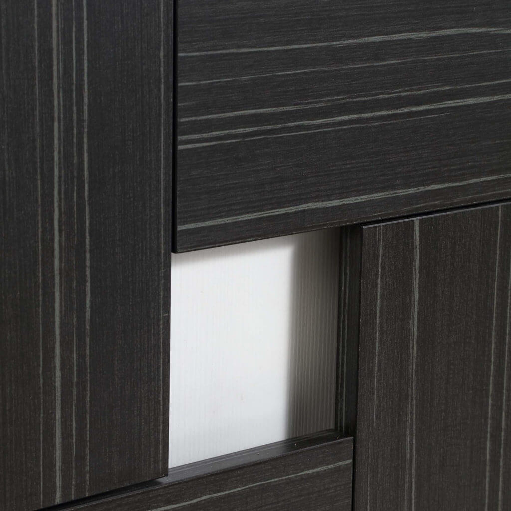 At the epicenter of Midland, you’ll find perfectly contrasting grains and an iconic square on square pattern. In seemingly layered cabinetry, 4 identical patterns are almost woven for interlocking accents that reveal shelf and drawer space for maximum storage. In well matched lacquered gray and white, there’s as much emphasis on style as there is on hidden organization.