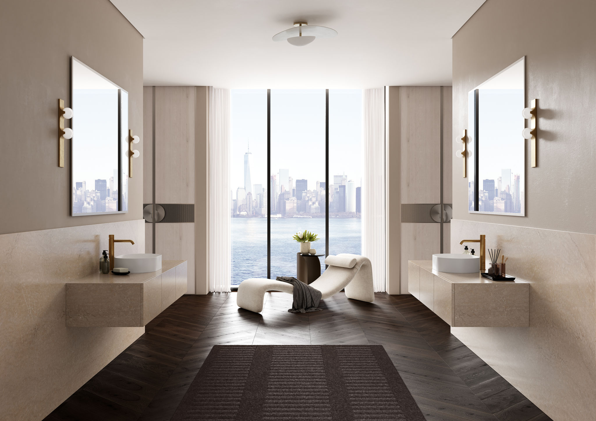 Inspired by the majesty of quartzite, antique gold accents complement beige and taupe layers, adding warmth, depth, and modern luxury.