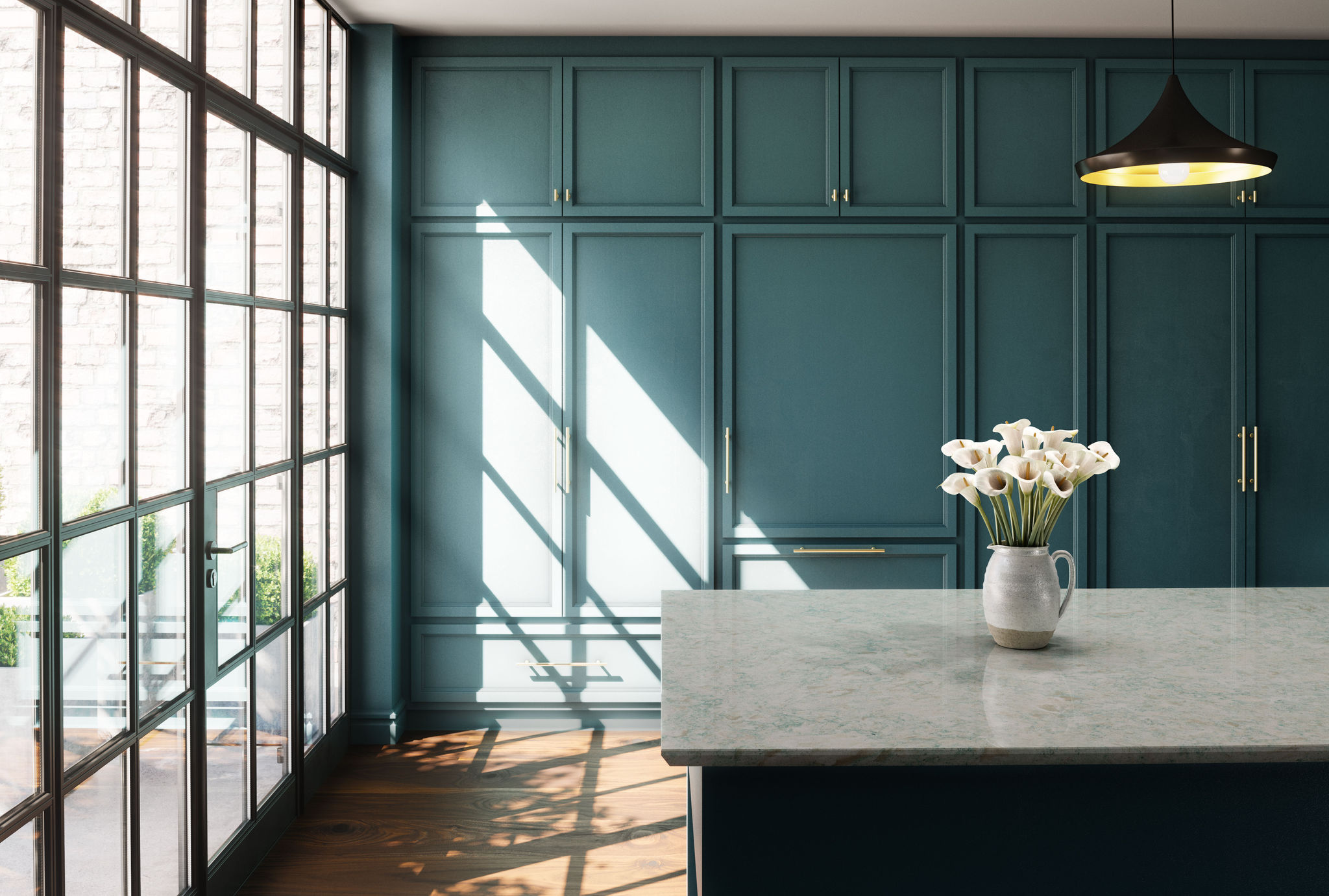 Montgomery is a refined study of whites, ivories, and creams coalescing with subtle, understated veins of seafoam green and a light dusting of pearlescent sparkle.