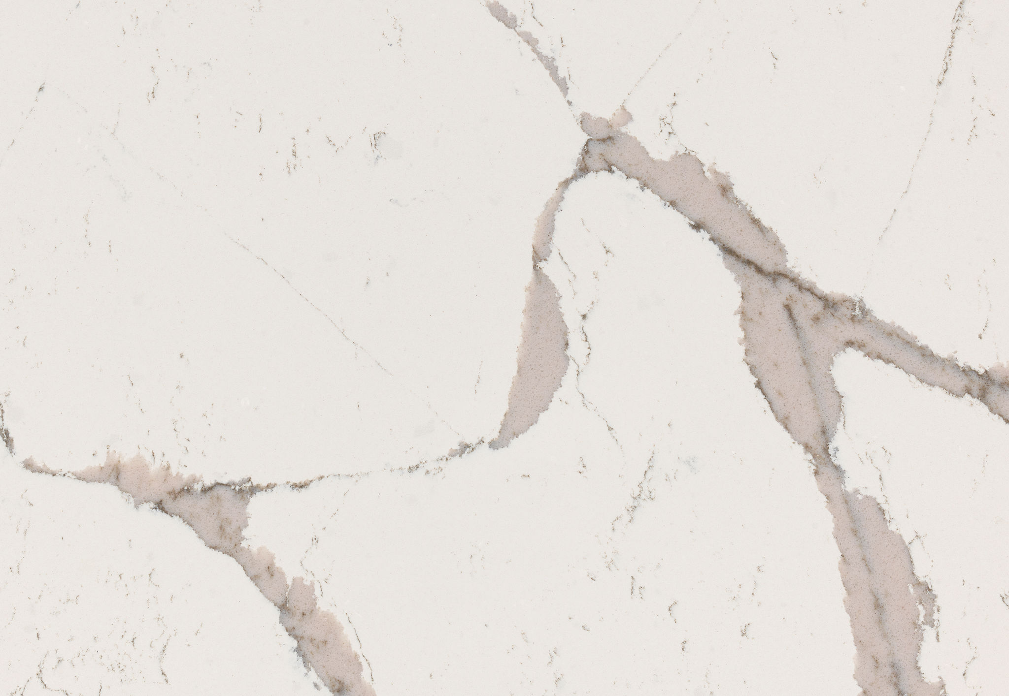 Bold streaks of sandy khaki, taupes, and grays flow freely across a cool white background to redefine luxury. Black vein accents and scattered neutral dots add to its lovely appeal.
