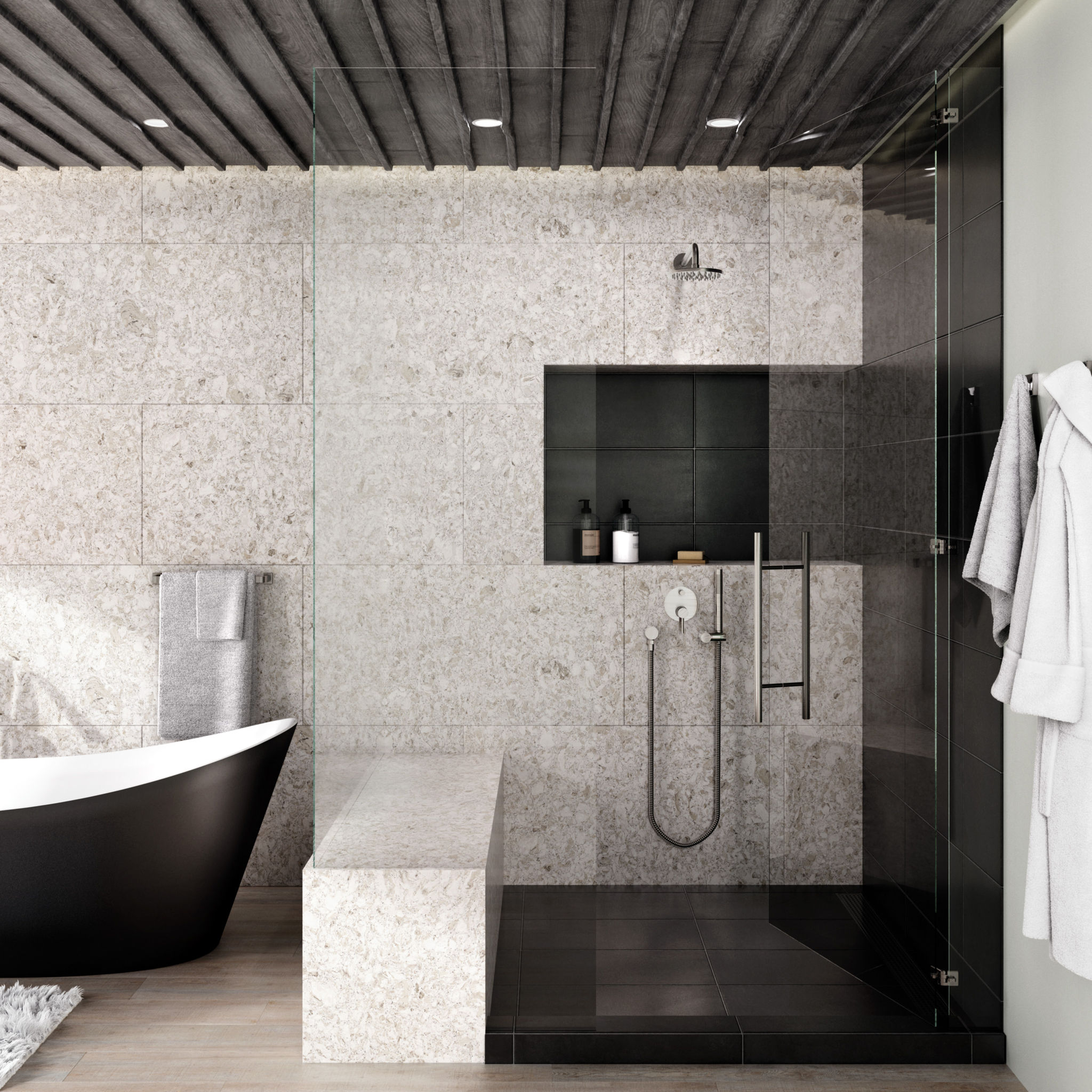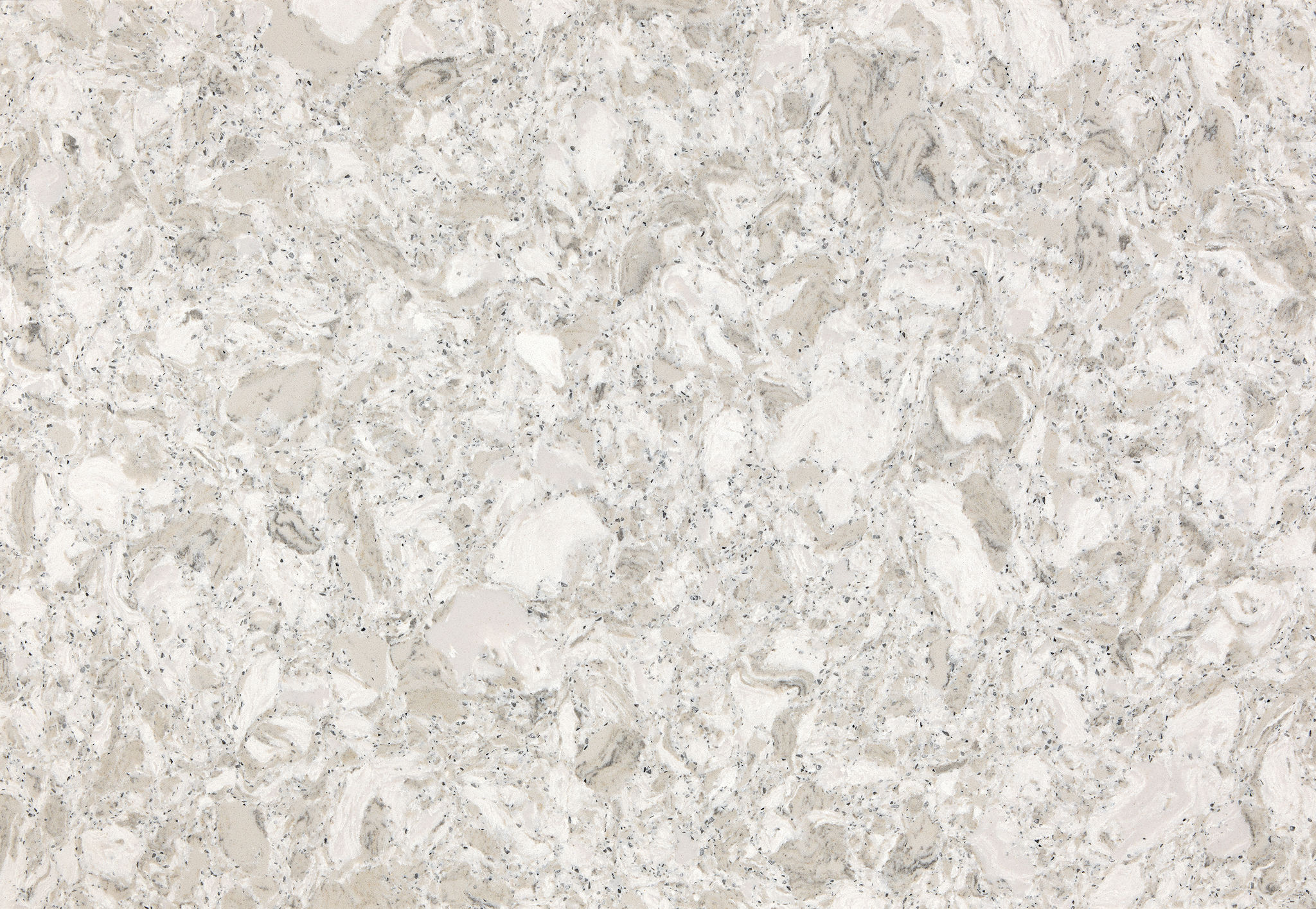 Delightful cool whites and warm grays compose a soothing fusion of hues, while silver flecks move across the surface, adding a touch of subtle glamour.