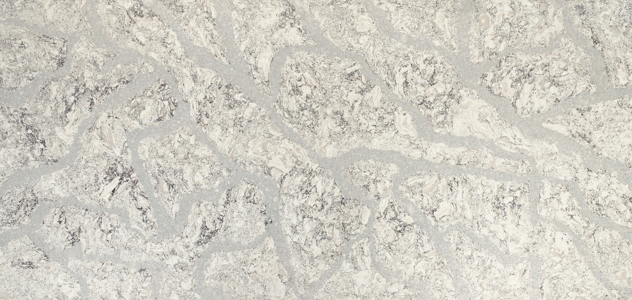 Cloudlike with pillows of white, Summerhill mixes several shades of white with large veins of white crystals, silver sparkle, and a light dusting of black throughout.
