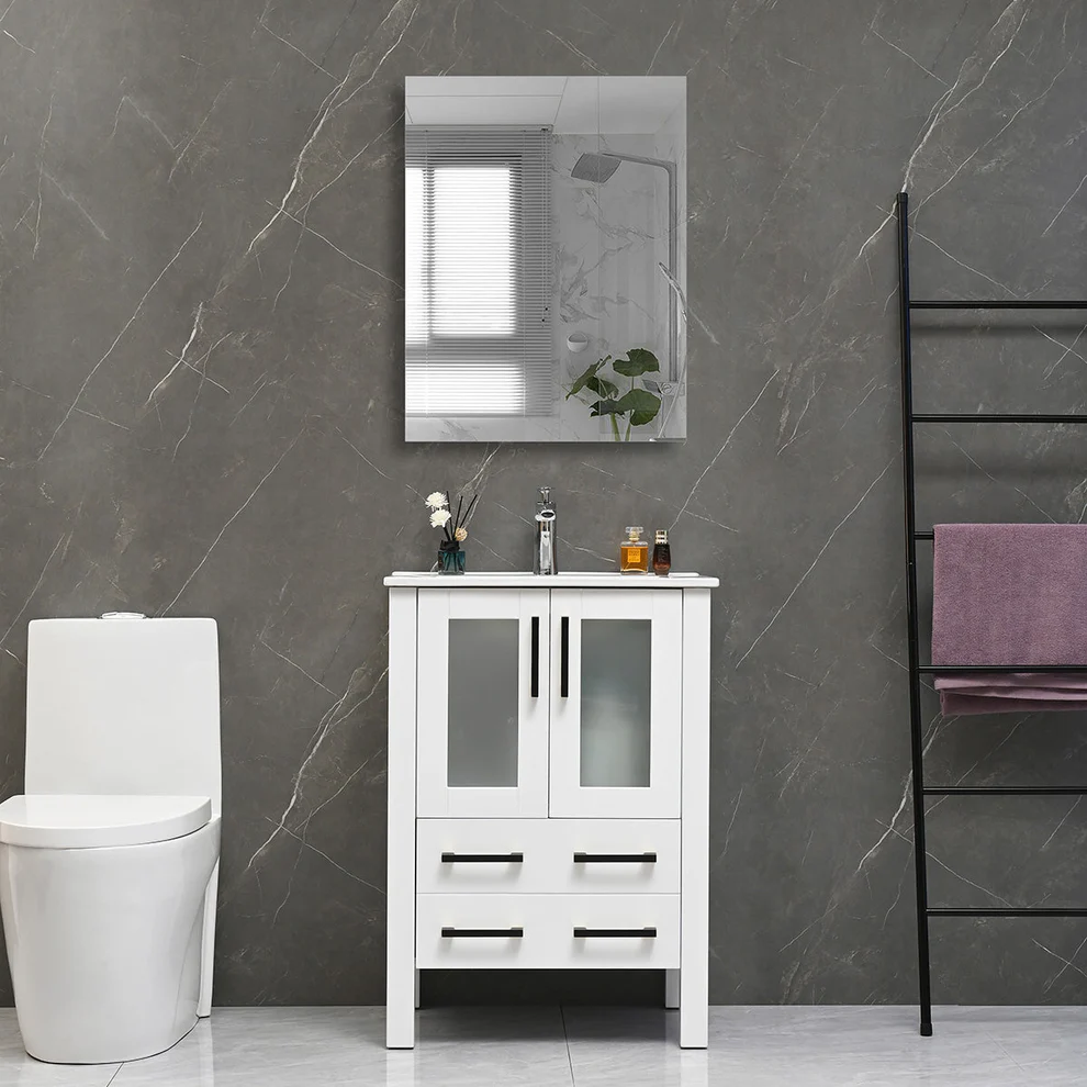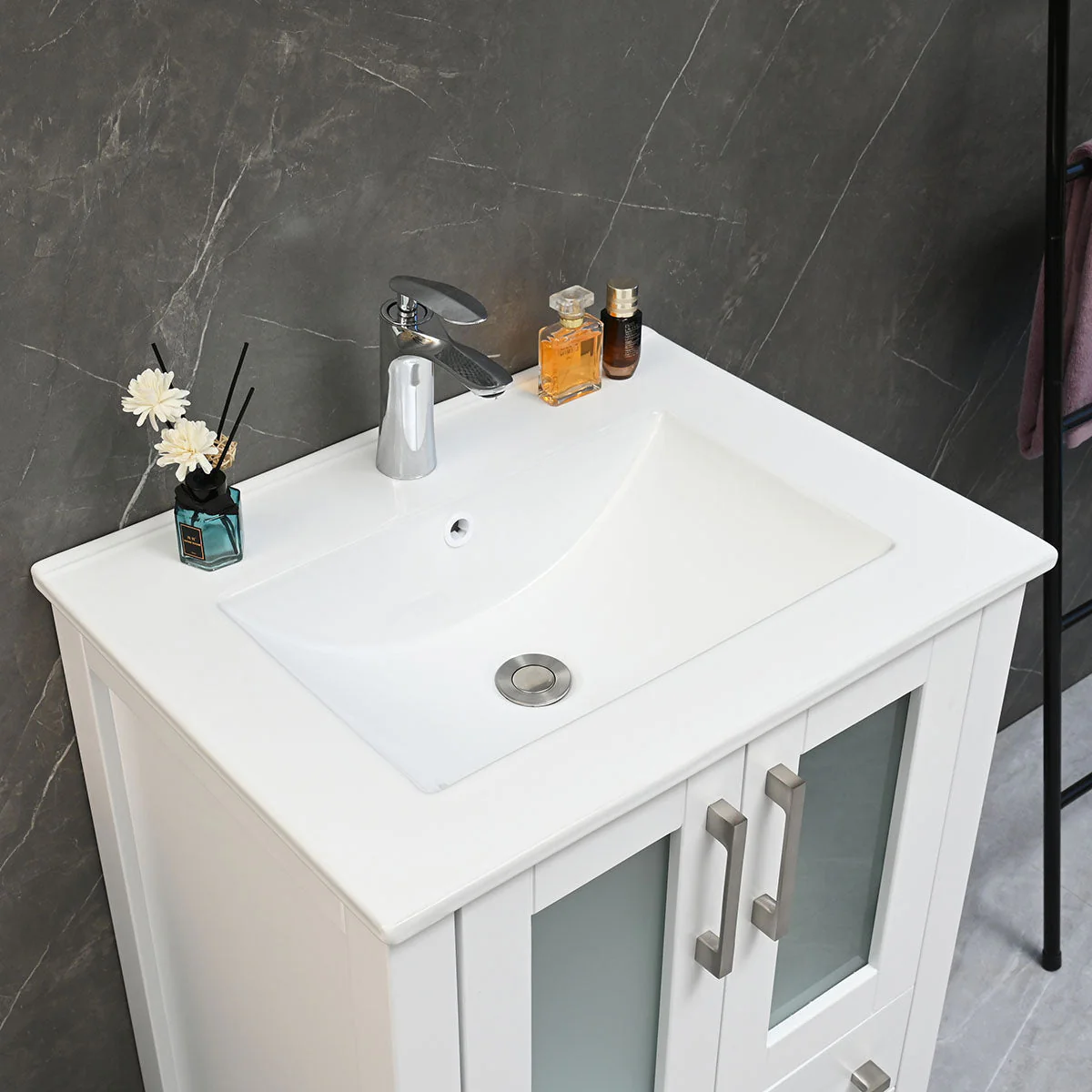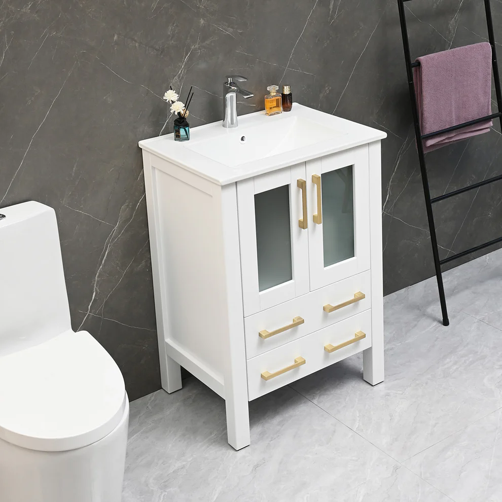 The V9011 Vanity & Ceramic Sink has been designed with an all-wood construction and Grade A Ceramic Sink for superior durability and luxury. Built with soft closing doors and drawers, this 24″ or 30″ vanity will enhance any bathroom aesthetic. Choose the optional LED Matching Aluminum Medicine Cabinet & LED Mirror for a high-end, sophisticated look.